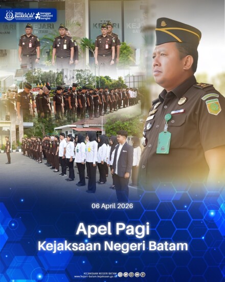 Senin, 06 April 2026 Kejaksaan Negeri Batam Melaksanakan Apel Pagi yang diikuti oleh seluruh pegawai dan honorer PPNPN Kejaksaan Negeri Batam. Apel Pagi diambil langsung oleh Kepala Seksi Intelijen Kejari Batam Priandi Firdaus, S.H., M.H. Pelaksanaan Apel pagi dimulai pada pukul 07.30 WIB dan petugas Apel setiap minggunya selalu bergantiSelanjutnya…