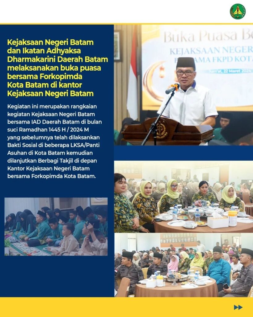 Kejaksaan Negeri Batam dan Ikatan Adhyaksa Dharmakarini Daerah Batam melaksanakan buka puasa bersama Forkopimda Kota Batam di kantor Kejaksaan Negeri Batam
